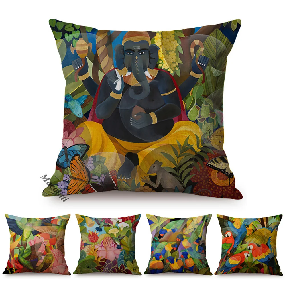 Poszewka na poduszkę w stylu tropikalnej dżungli, papuga, tukan, słoń, egzotyczna akwarela, dekoracyjna poszewka na poduszkę do samochodu, na sofę, cojines