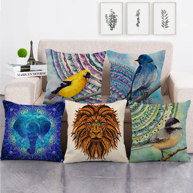 Indyjskie wzorzyste poszewki na poduszki z krótkiego pluszu z nadrukiem cyfrowym, ze wzorami słonia, lwa i zwierząt, na samochód, sofę, do biura, na poduszki, artykuły gospodarstwa domowego.
