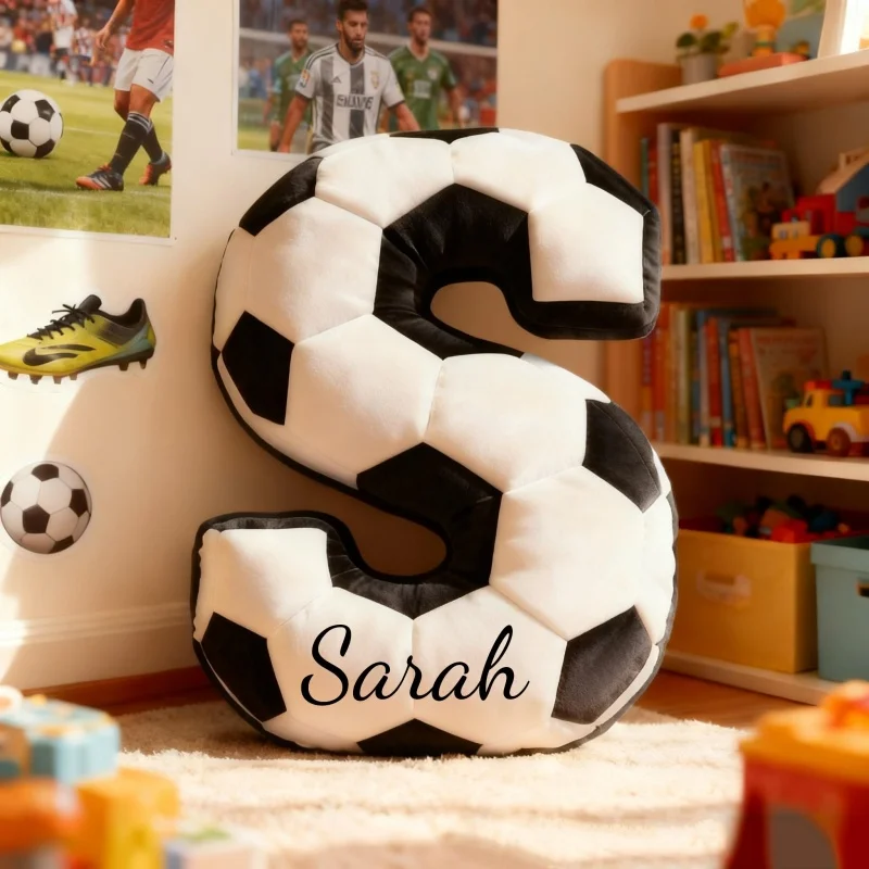 Personalizowana poduszka w kształcie piłki nożnej z nadrukiem liter, poduszka z inicjałami i imieniem, poduszka piłkarska, prezent dla miłośnika sportu
