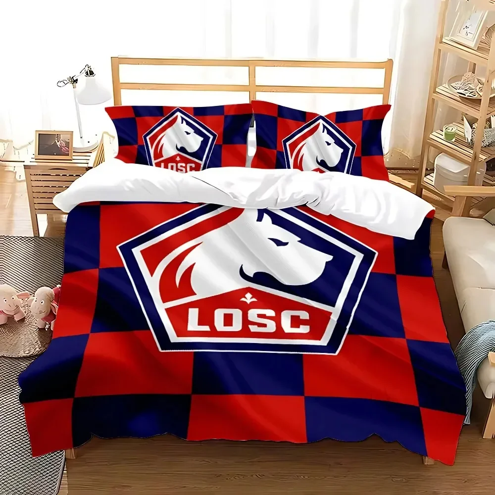 Zestaw pościeli Lille OSC, rozmiar pojedynczy, twin, full, queen, king, zestaw pościeli z logo klubu piłkarskiego dla dzieci, zestawy pościeli do pokoju dziecięcego