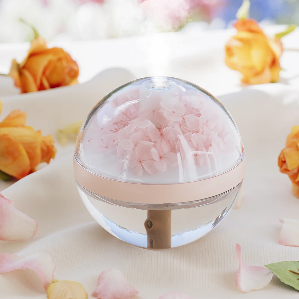 Nawilżacz Powietrza Eternal Flower, Elektroniczny Nawilżacz Chłodną Mgłą z Podświetleniem Ambientowym, Wbudowany Akumulator, Prezent dla Ukochanej Osoby