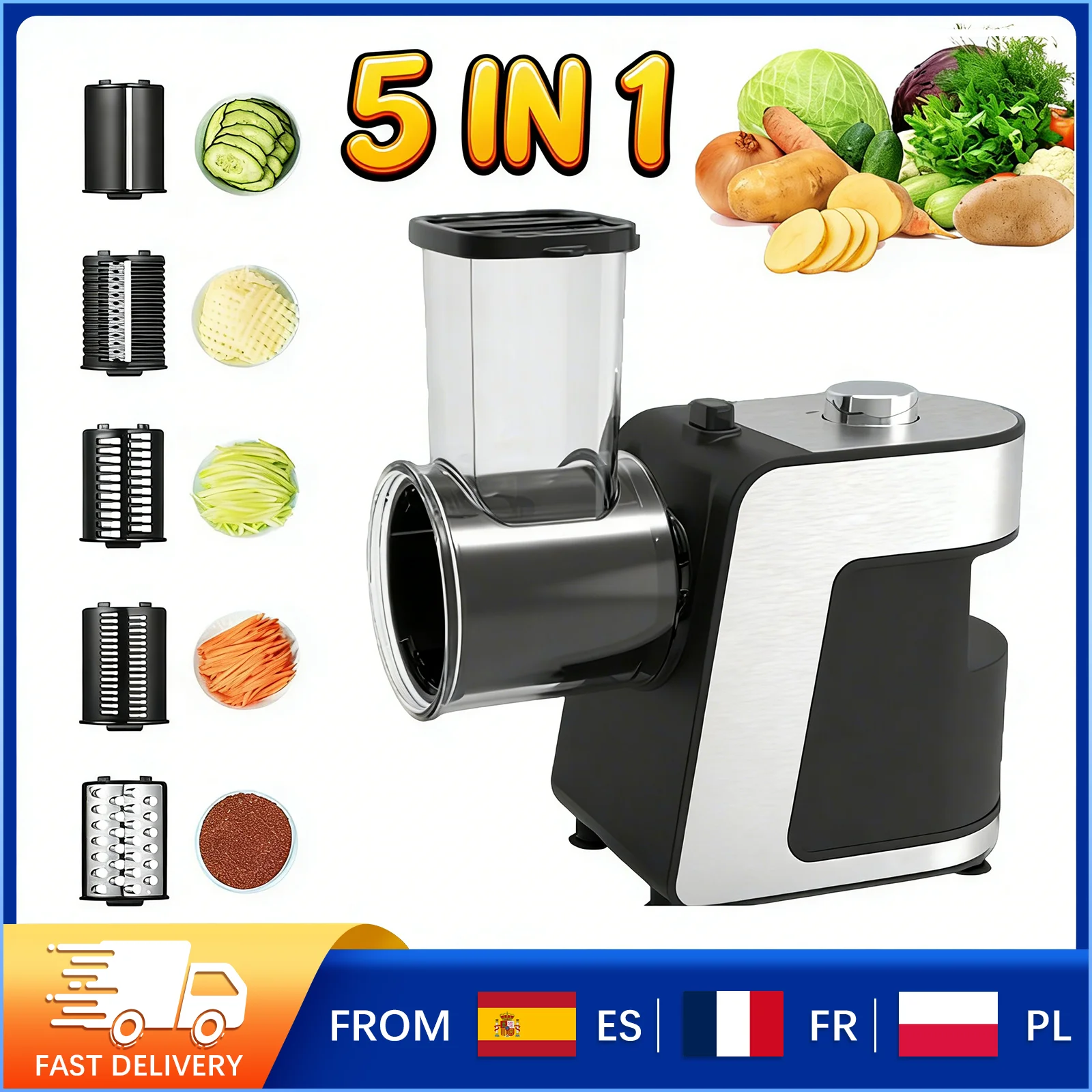Elektryczna krajalnica do warzyw 1000W, wielofunkcyjna maszynka do krojenia, 5-kształtne ostrza ze stali nierdzewnej, łatwa w czyszczeniu, niezbędne narzędzie kuchenne.