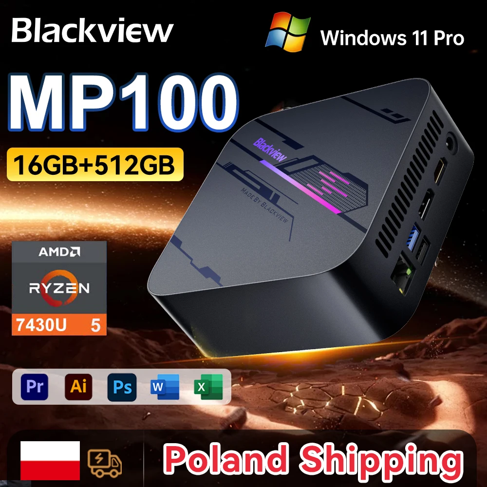 [Wysyłka z Polski] Blackview MP100 16GB DDR4 512GB SSD Mini PC 7430U Windows 11 Pro AMD 6-rdzeniowy 12-wątkowy Mini Komputer