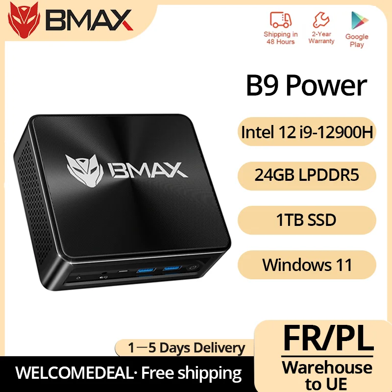 Bmax B9 Power Barebone Mini PC: Intel Core i9-12900H, 14 rdzeni, prędkość do 5.0GHz, 24GB RAM, 1TB SSD, WiFi 6, Bluetooth 5.2