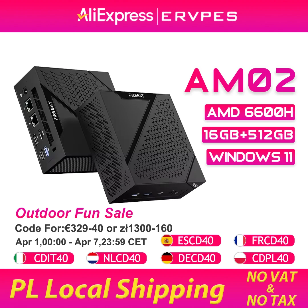 FIREBAT MINI PC AM02 AMD Ryzen 5 6600H 16GB DDR5 512GB SSD Windows 11 WIFI6 BT5.2 Przenośny Komputer Stacjonarny Port Sieciowy HDMI