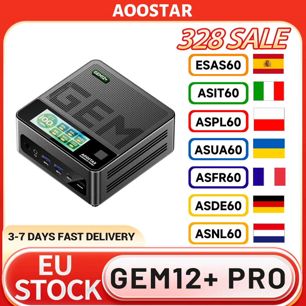 AOOSTAR GEM12+ Pro Mini PC Barebone (bez pamięci RAM i dysku SSD) z wyświetlaczem, AMD Ryzen 7 Pro 8845HS 8 rdzeni, maks. 5,1 GHz, odczyt odcisków palców
