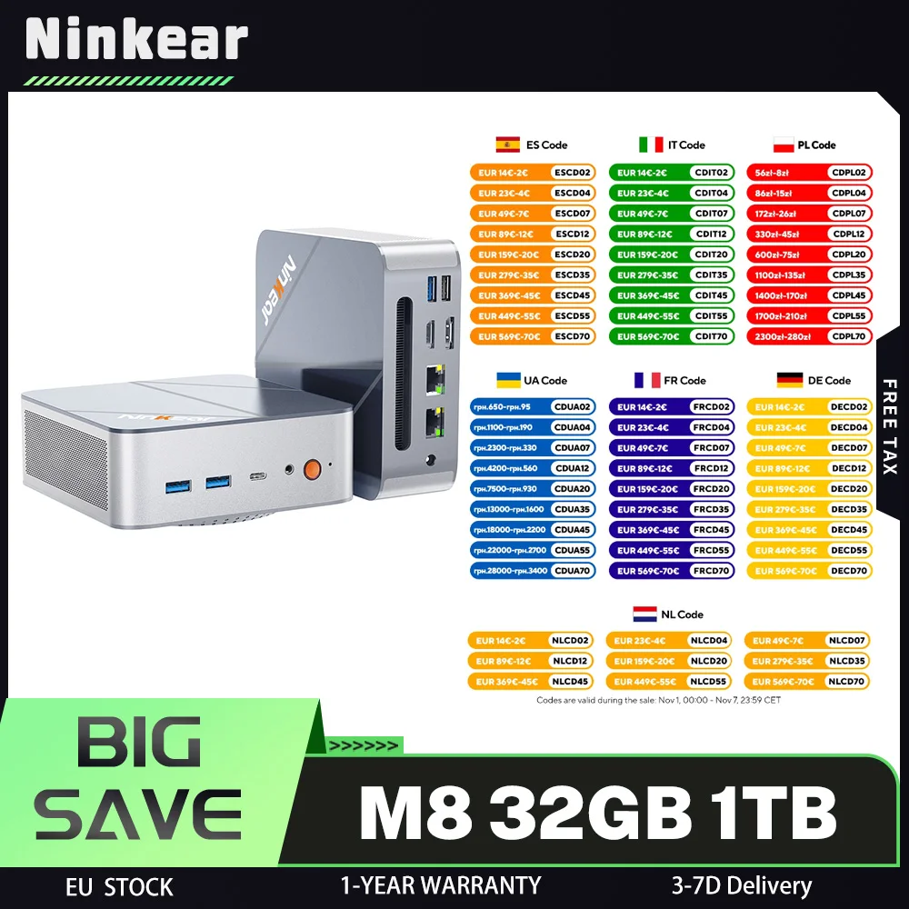 Mini PC ACEMAGIC G1 z procesorem AMD Ryzen 9 8945HS, 32 GB pamięci DDR5, 1 TB dysku SSD M.2, Mini PC do gier z USB Type-C, obsługuje trzy wyświetlacze 4K