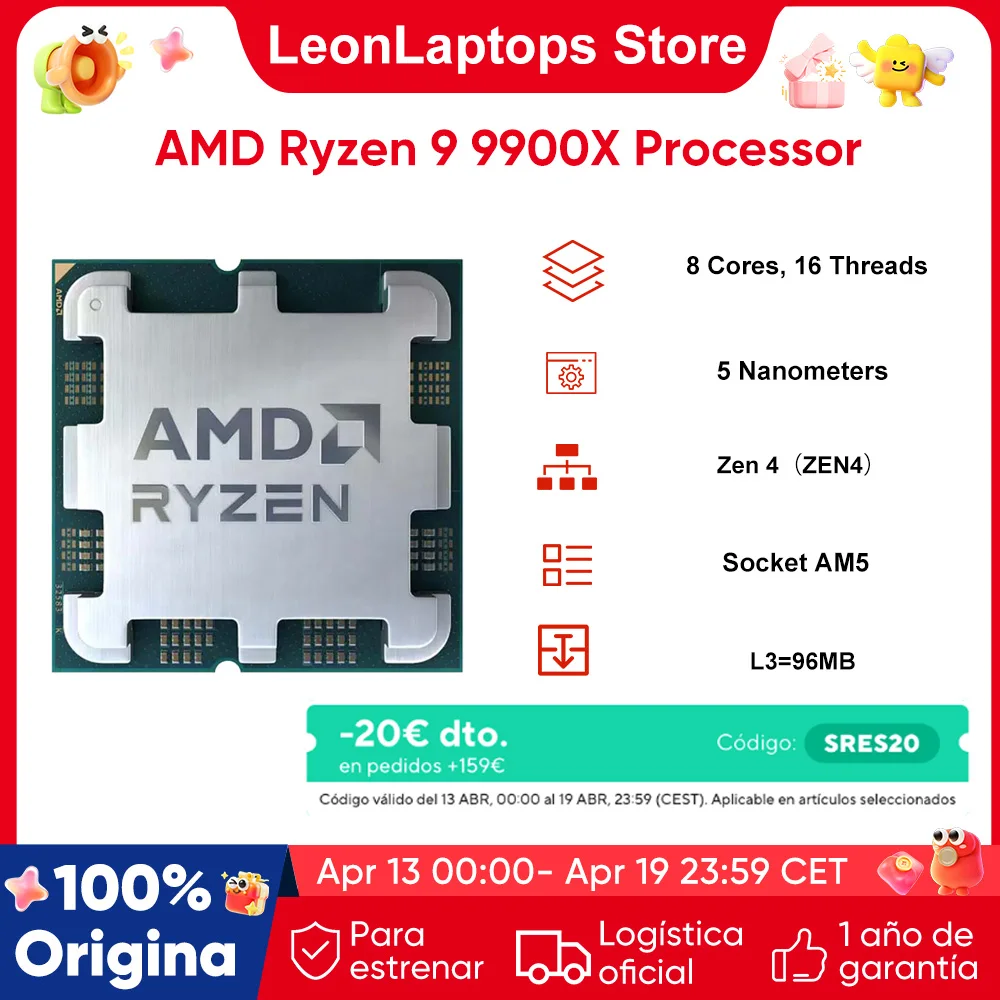 AMD Ryzen 5 9600X L3=32M 5.4GHz 6-rdzeniowy 12-wątkowy procesor do gier R5 9600X 65W 4NM DDR5 Socket AM5 bez wentylatora