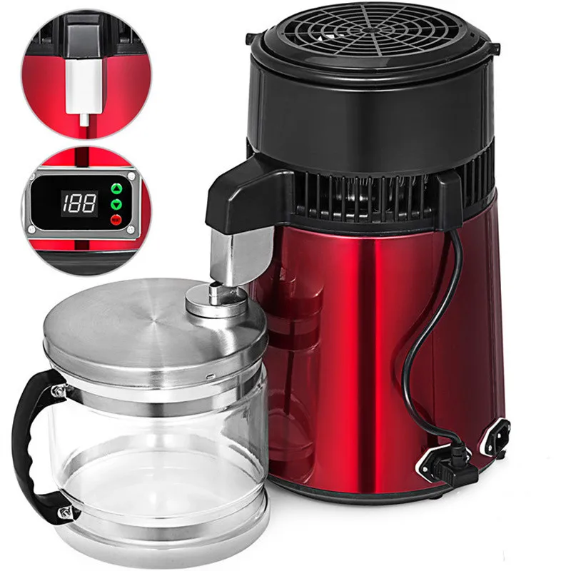 【Cena Fabryczna】Kolorowy Destylator Wody Oczyszczacz Wody Ze Stali Nierdzewnej Elektryczny Szybki Domowy Angielski Model z Nadrukiem 750W 4L Darmowe Części Zamienne