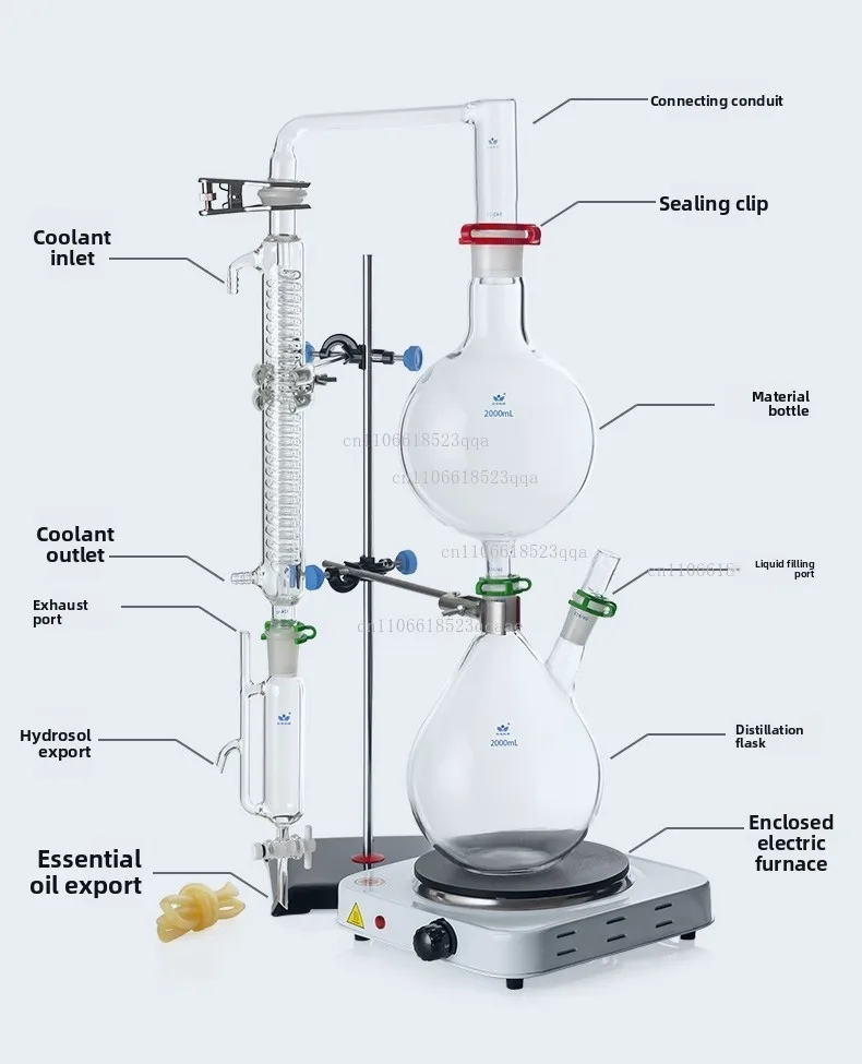 Zestaw do destylacji olejków eterycznych o pojemności 250 ml Zestaw naczyń ze szkła borokrzemowego z żelaznym stojakiem i skraplaczem do użytku domowego w laboratorium JVLAB (Bez alkoholu)