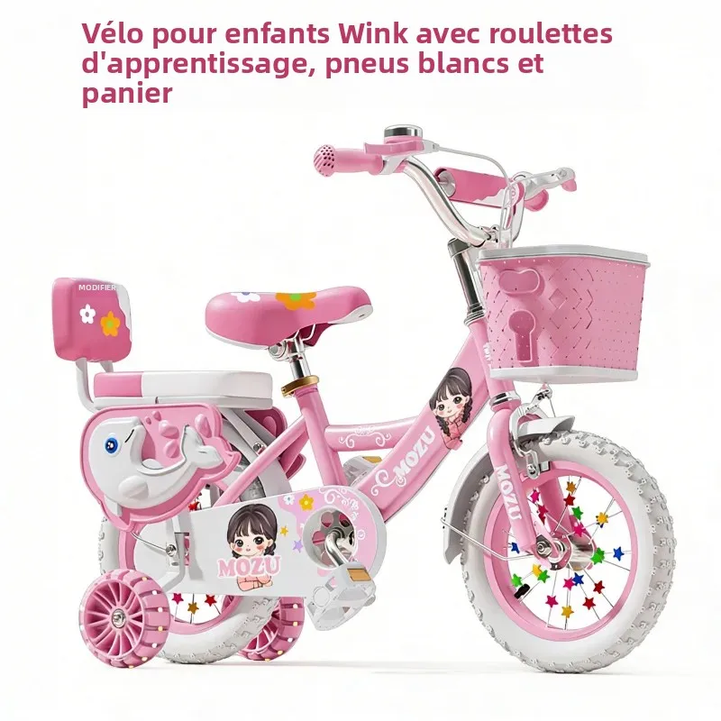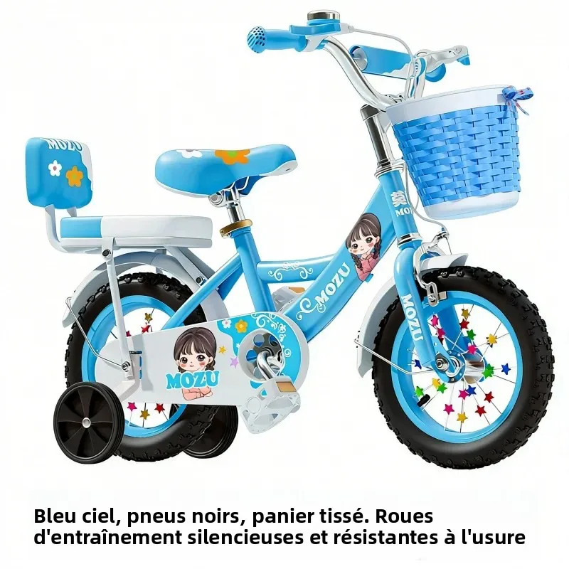 Rower dziecięcy 12 cali z nie składanymi kołami pomocniczymi, w kolorze błękitnym i czarnym, zabawka samochodowa, torba na prezenty w zestawie, dla dzieci w wieku 3-6 lat.