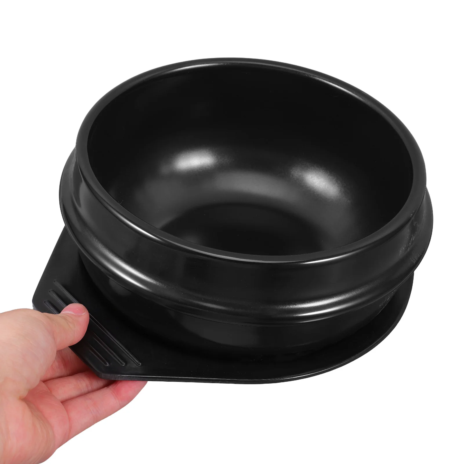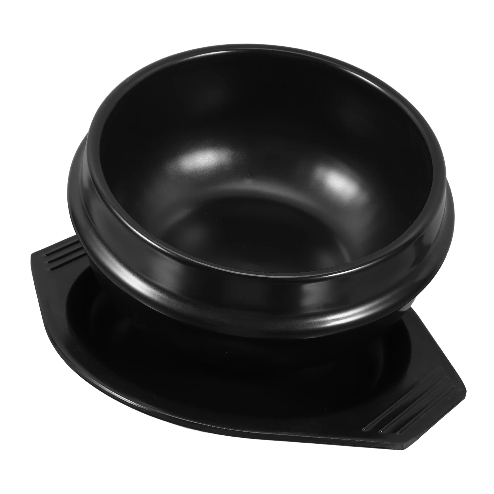 Garnek z gliny o średnicy 16 cm z tacką, żaroodporny koreański garnek kamienny, nieprzywierający, czarny, klasyczny naczynie do bibimbap, do użytku komercyjnego.