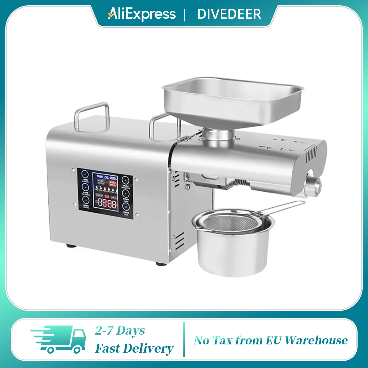 DIVEDEER X8S Prasa do oleju Domowa Automatyczna Wielofunkcyjna Prasa do Oleju ze Stali Nierdzewnej do Orzechów Ziemnych i Oliwy, Prasa do Oleju na Zimno i na Gorąco