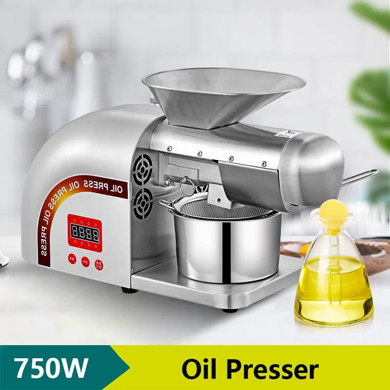 Automatyczna prasa do oleju 750W Elektryczna wyciskarka do oliwy z oliwek, pestek orzechów, orzechów ziemnych, przenośna prasa do oleju ze stali nierdzewnej do migdałów i sezamu