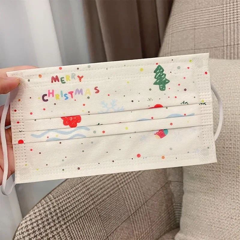 Świąteczne maski na twarz, urocze wzory z kreskówek, jednorazowe maski ochronne, pakowane pojedynczo.