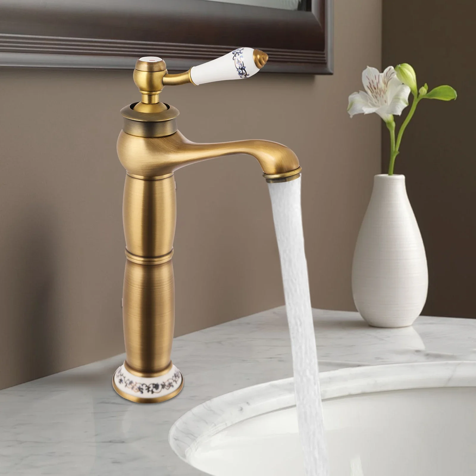 Złota bateria umywalkowa w stylu vintage, bateria łazienkowa z regulacją temperatury, odporna na uderzenia, bateria łazienkowa retro do domów/hotelów/łazienek