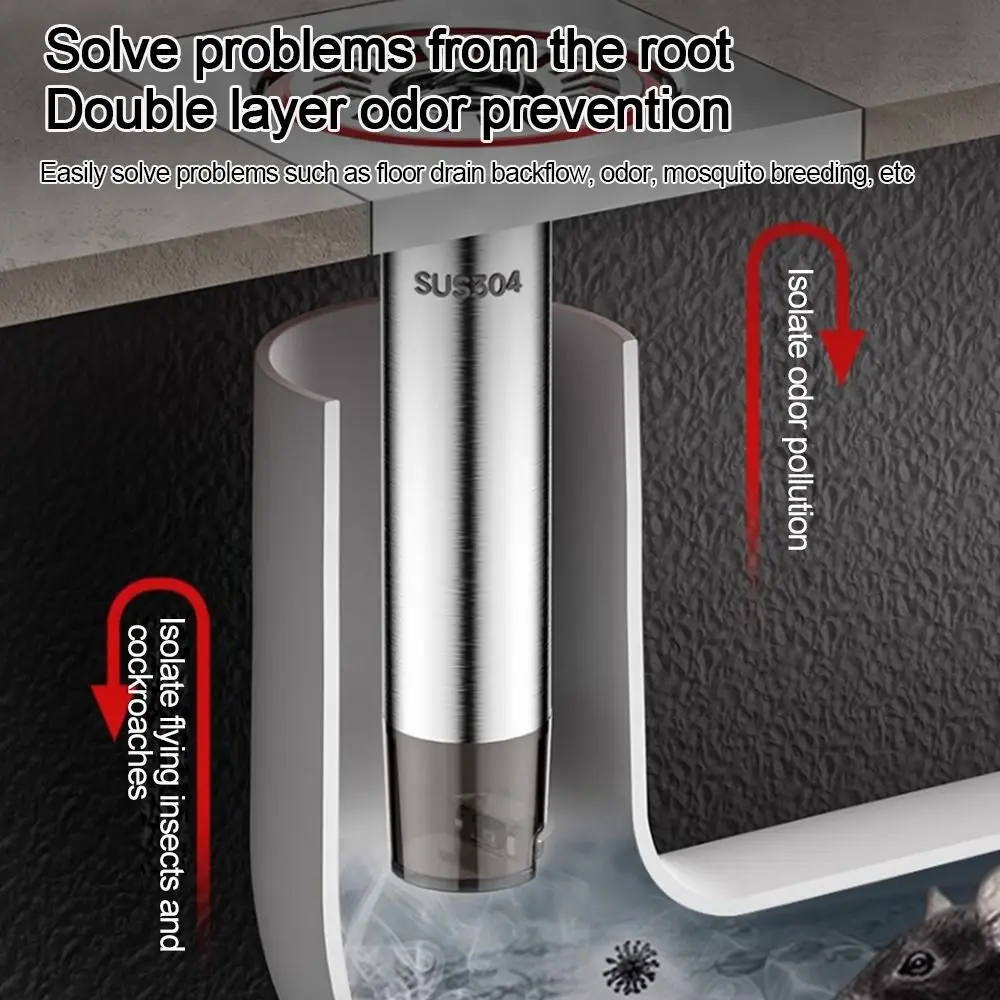 Odpływ podłogowy ze stali nierdzewnej, odporny na rdzę, z filtrem przeciw owadom, odpływ łazienkowy typu U, dezodorant, pokrywa dezodorująca, odpływ kanalizacyjny.