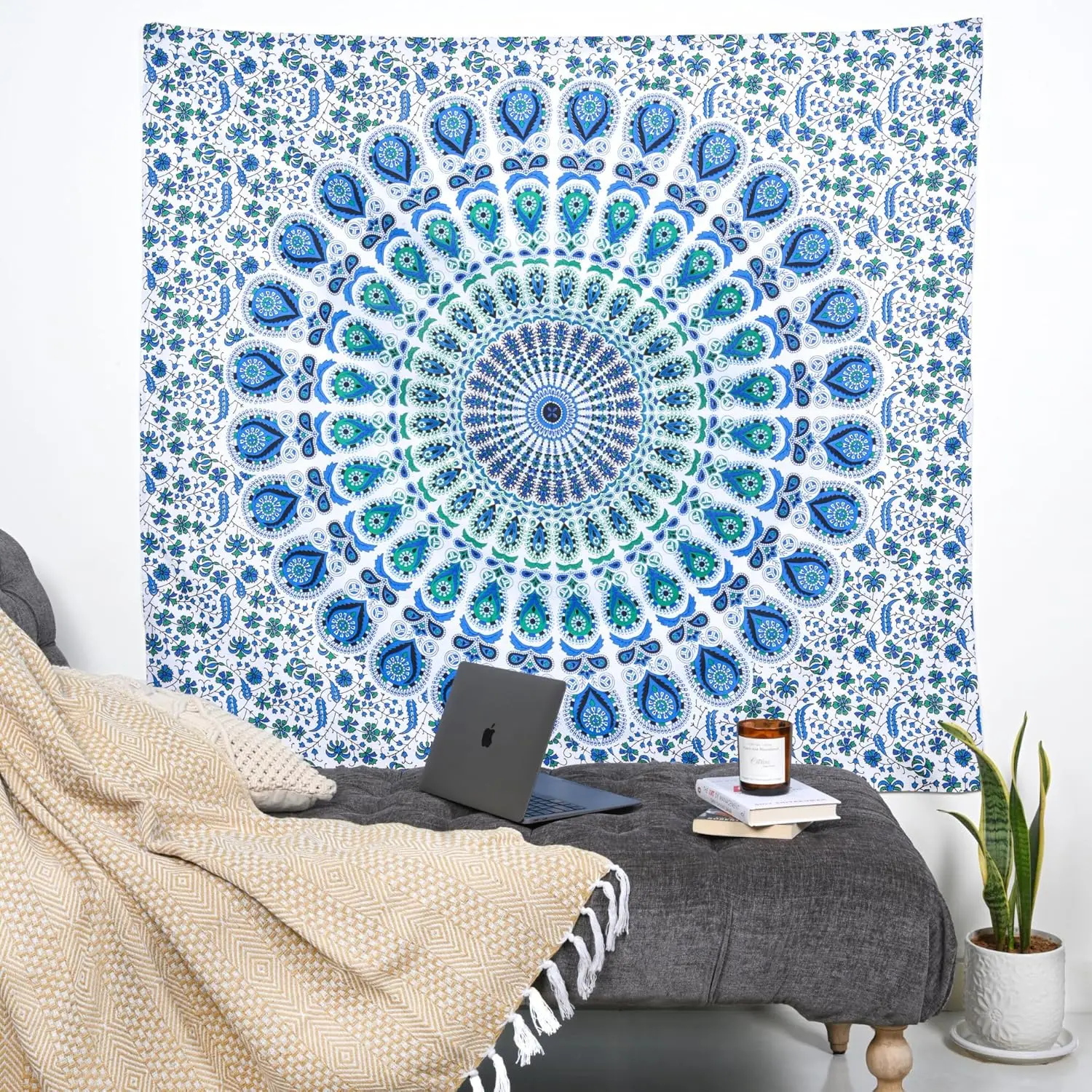 Gobelin Mandala Paw, Dekoracja Ścienna, Pościel w Stylu Boho, Indyjski Rękodzieło, Czysta Bawełna, Hippie, Dekoracyjne Gobeliny Trippy