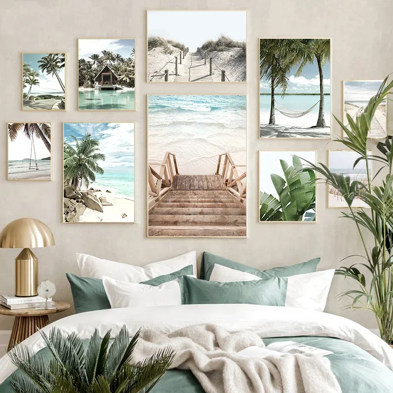 Puzzle drewniane dla dorosłych z motywem tropikalnej plaży - 2000/1500/1000/500 elementów - Żywe palmy, łódź i scena oceaniczna, wysokiej jakości drewno