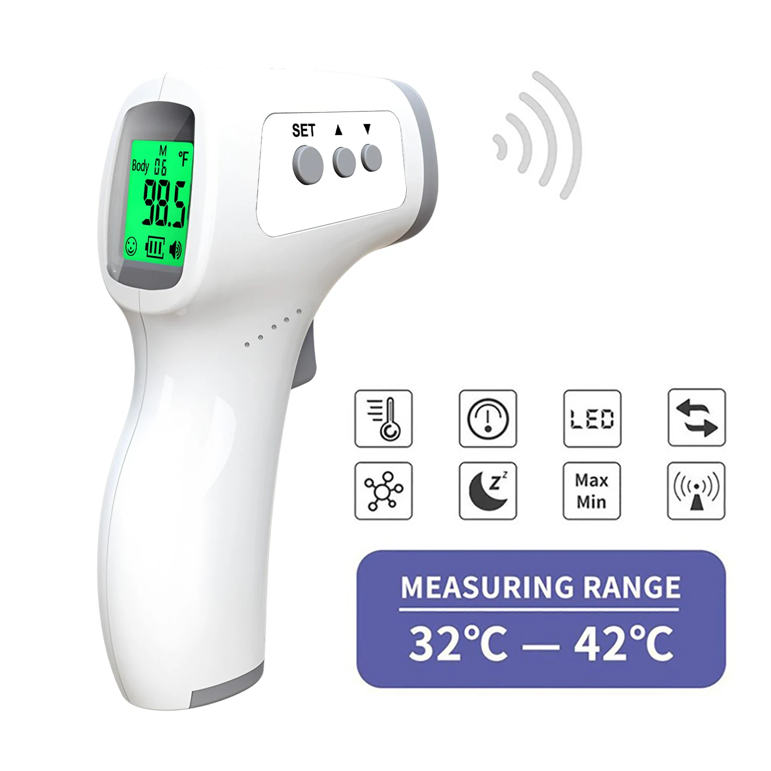 Termometr bezdotykowy do pomiaru temperatury dla dzieci i dorosłych, cyfrowy termometr, miernik temperatury gorączki, termograf na czoło.