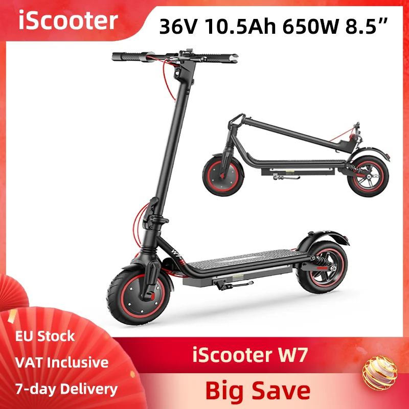 Hulajnoga elektryczna iScooter W7, 36V 10.5Ah, silnik 650W, zasięg 25-35km, koła 8.5 cali, 4 tryby prędkości, 35km/h, podwójne amortyzatory, hulajnogi elektryczne