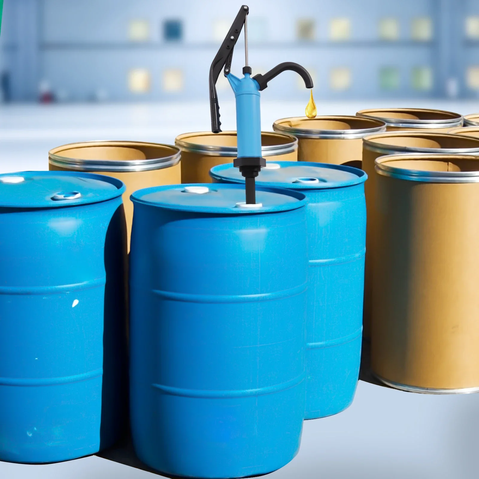 Ręczna pompa do beczek z dźwignią, model 2.2 funta, do oleju napędowego, ręczna, plastikowa, z dźwignią, do beczek, niebieska.