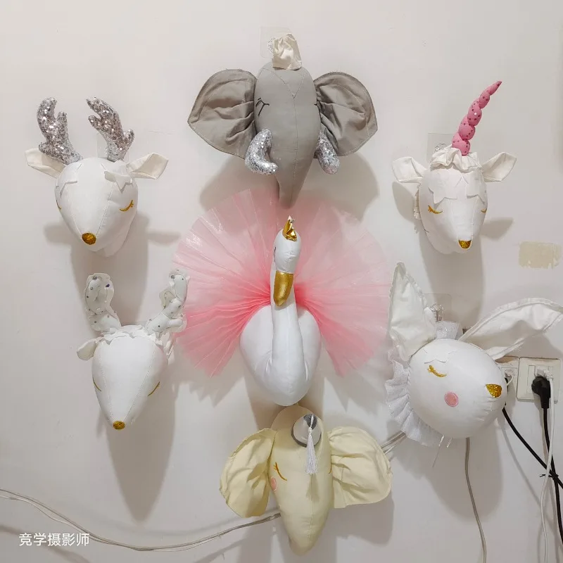 INS Cartoon Animals Head Wall Decoration 3D Ozdoby do pokoju dziecięcego Elephant Swan Home Pendant Kids Baby Girl Room Decor Gift
