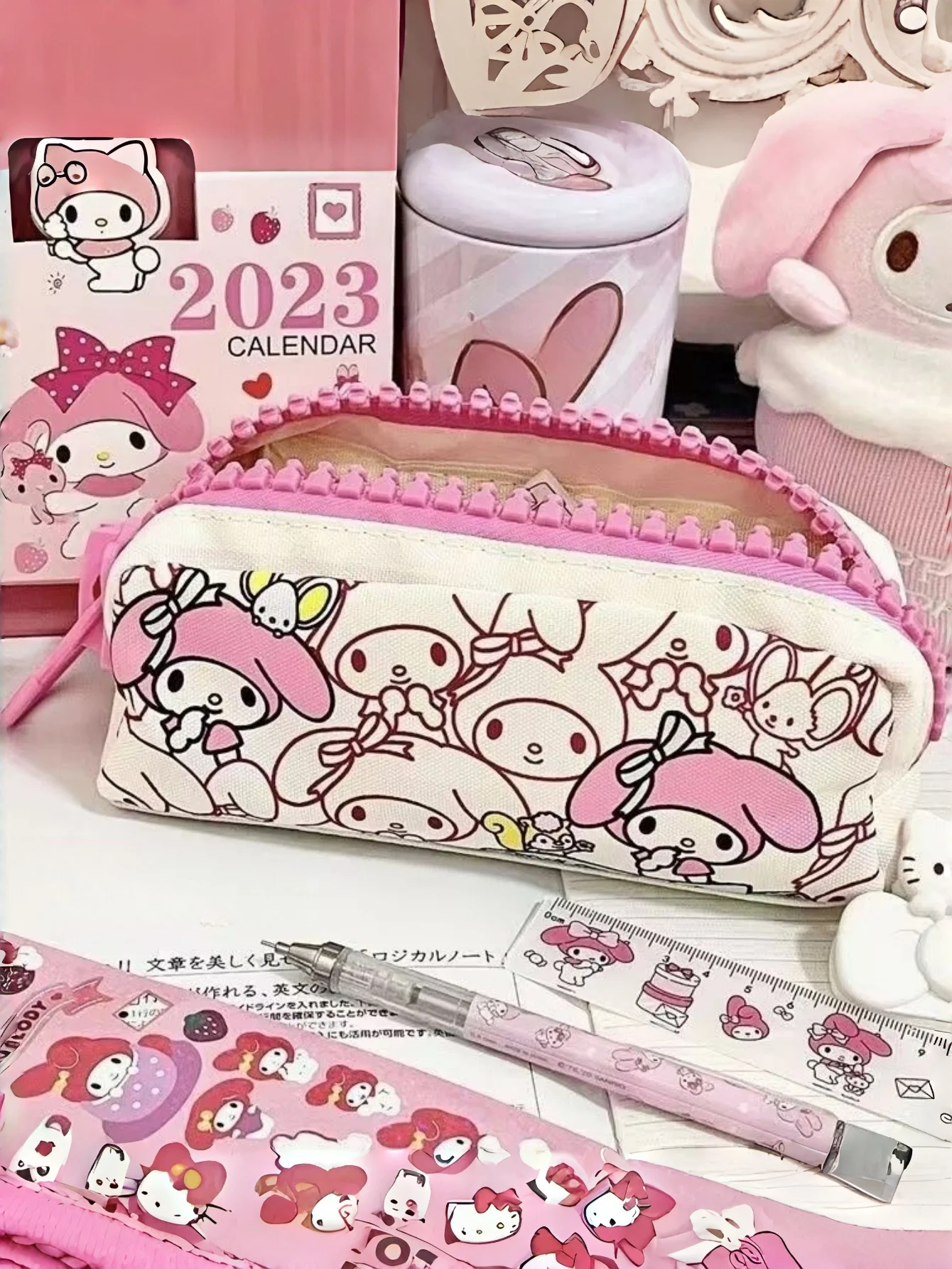 1 szt. Piórnik My Melody, kreskówkowy, uroczy, duży, z zamkiem błyskawicznym, dla chłopców i dziewcząt, pojemny piórnik na ołówki.