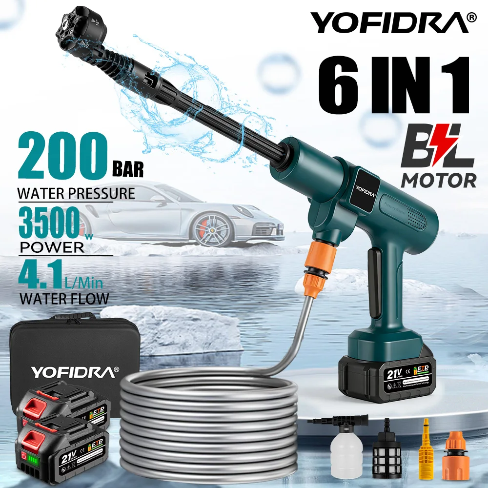 YOFIDRA 200Bar Bezszczotkowa Myjka Ciśnieniowa Pistolet Wodny do Samochodu + Wiadro do Mycia Ogrodu Pistolet Natryskowy do Akumulatora Makita 21V