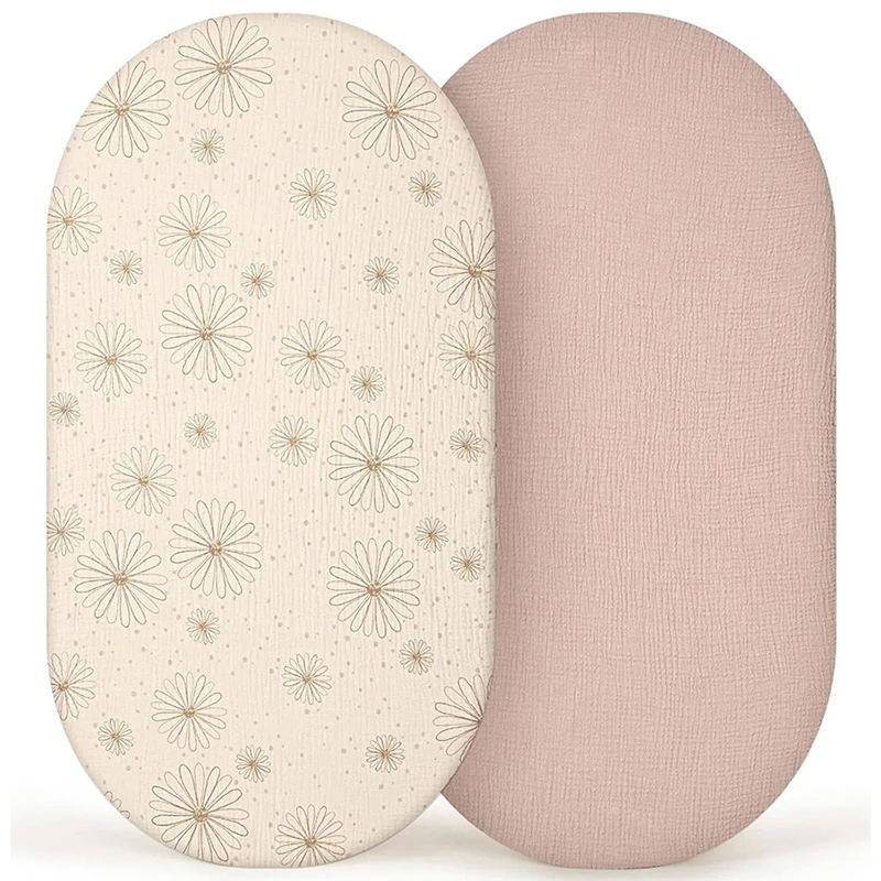 Prześcieradła do kołyski, miękkie, oddychające, elastyczne, muślinowe, uniwersalne na materac o kształcie owalnym lub prostokątnym.
