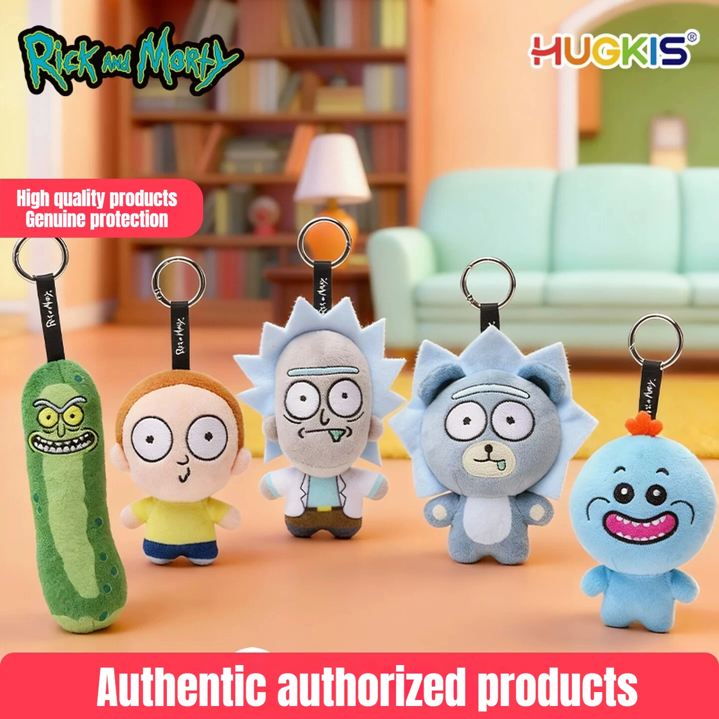 Oficjalne pluszowe breloczki HUGKIS Rick i Morty, wypchane lalki, zawieszki do torebek i plecaków, kolekcjonerskie prezenty dla dzieci, dorosłych i fanów.