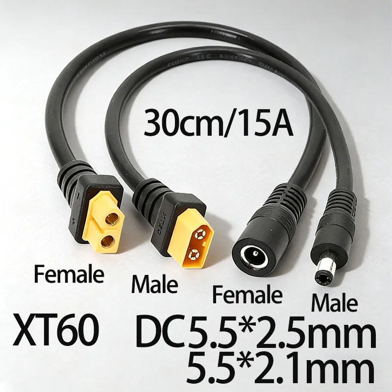 Kabel adapter 1PCModel Airplane Players XT60 męski i żeński na DC5521/5.5*2.5mm męski i żeński, przewód 1.5AWG, długość 15 stóp/0.3M, niezbędny.