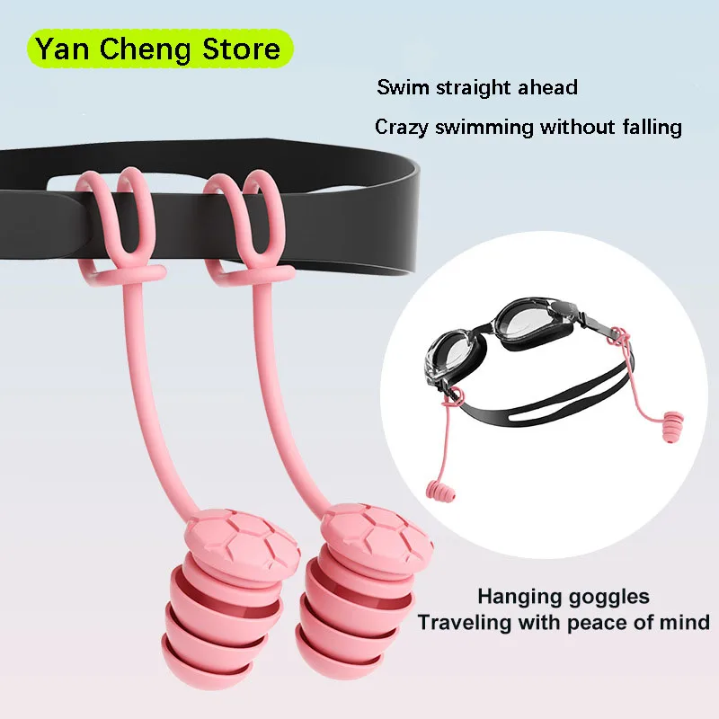 Zatyczki do uszu do pływania ze sznurkiem dla łatwego mocowania i zapobiegania zgubieniu. Trójwarstwowa izolacja akustyczna. Miękkie silikonowe zatyczki do uszu.