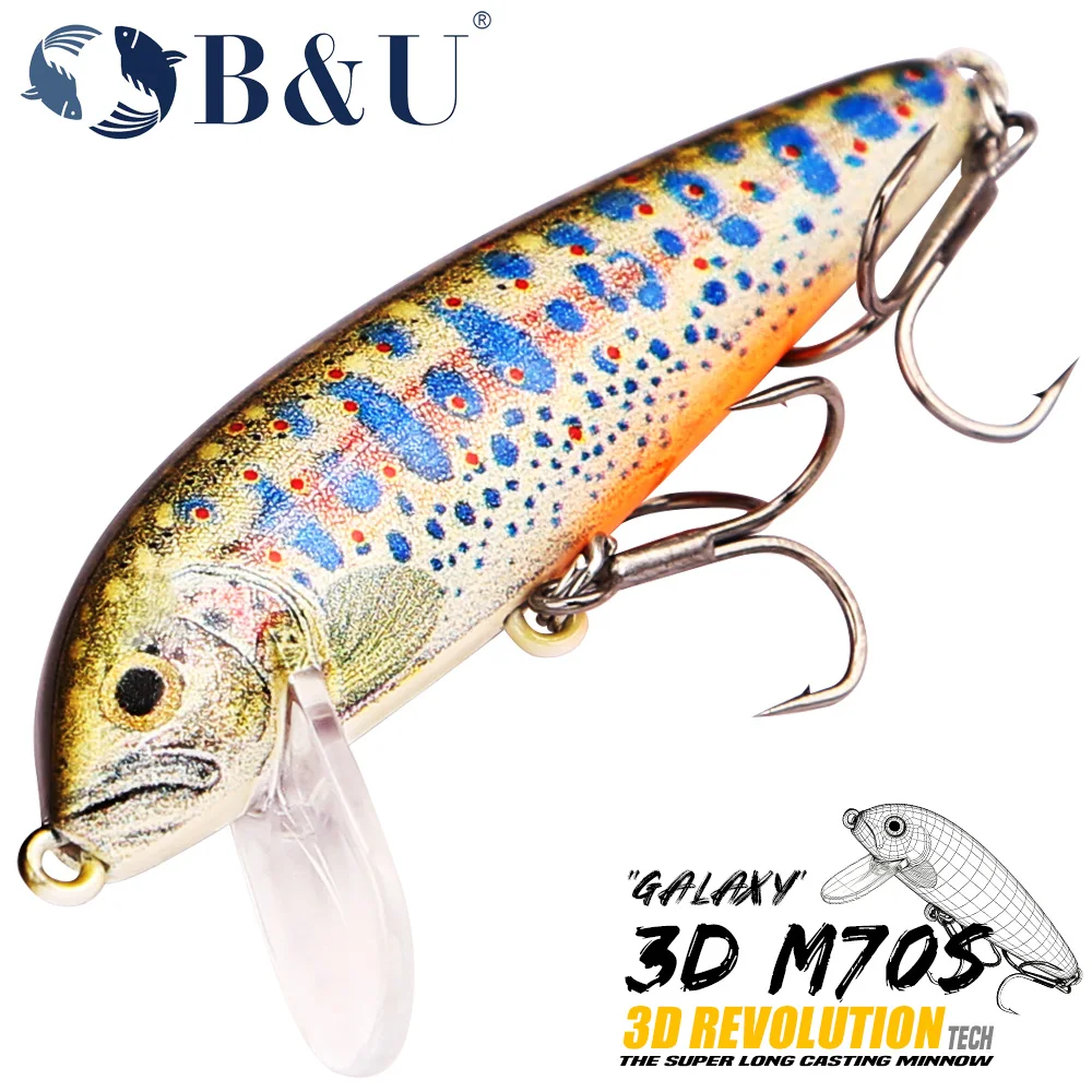 Przynęty wędkarskie B&U Sinking Minnow, realistyczne przynęty twarde 3D do dalekich rzutów z kotwiczkami, do połowu w wodach słodkich i słonych, na okonia, pstrąga i szczupaka.