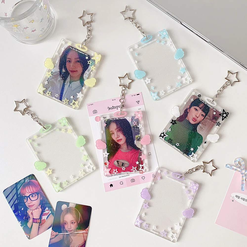 Modny koreański przezroczysty akrylowy uchwyt na karty z motywem skrzydeł i gwiazd, uroczy organizer na zdjęcia 3 cale dla dziewczyn, idoli, uczniów, ochrona kart studenckich.