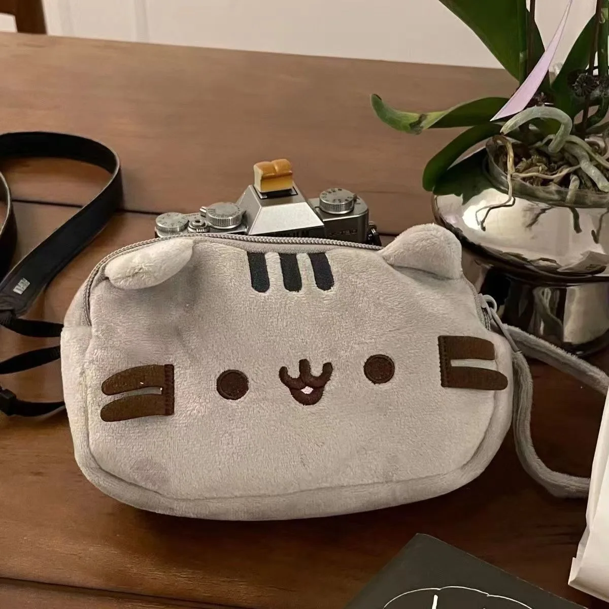 Uroczy, pulchny kot, śpiący kot, szary kot, pluszowy piórnik, duża pojemność, szkolne przybory, torba do przechowywania na biurko.