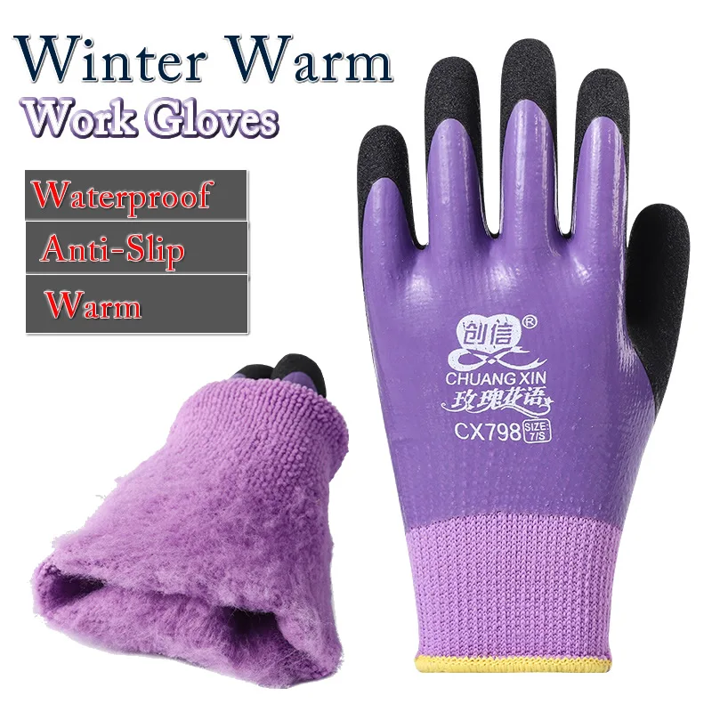 Zimowe ciepłe rękawice robocze damskie mitenki antypoślizgowe wodoodporne powlekane lateksem rękawice termiczne do ogrodu, wędkowania, rękawice ochronne do pracy