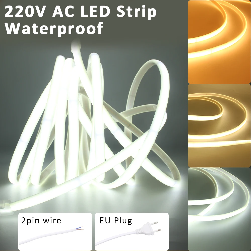 Taśmy LED 220V Wodoodporne Taśmy LED COB 240 LED/M 3000K 4000K 6000K Dekoracja Domu Elastyczne Oświetlenie Liniowe
