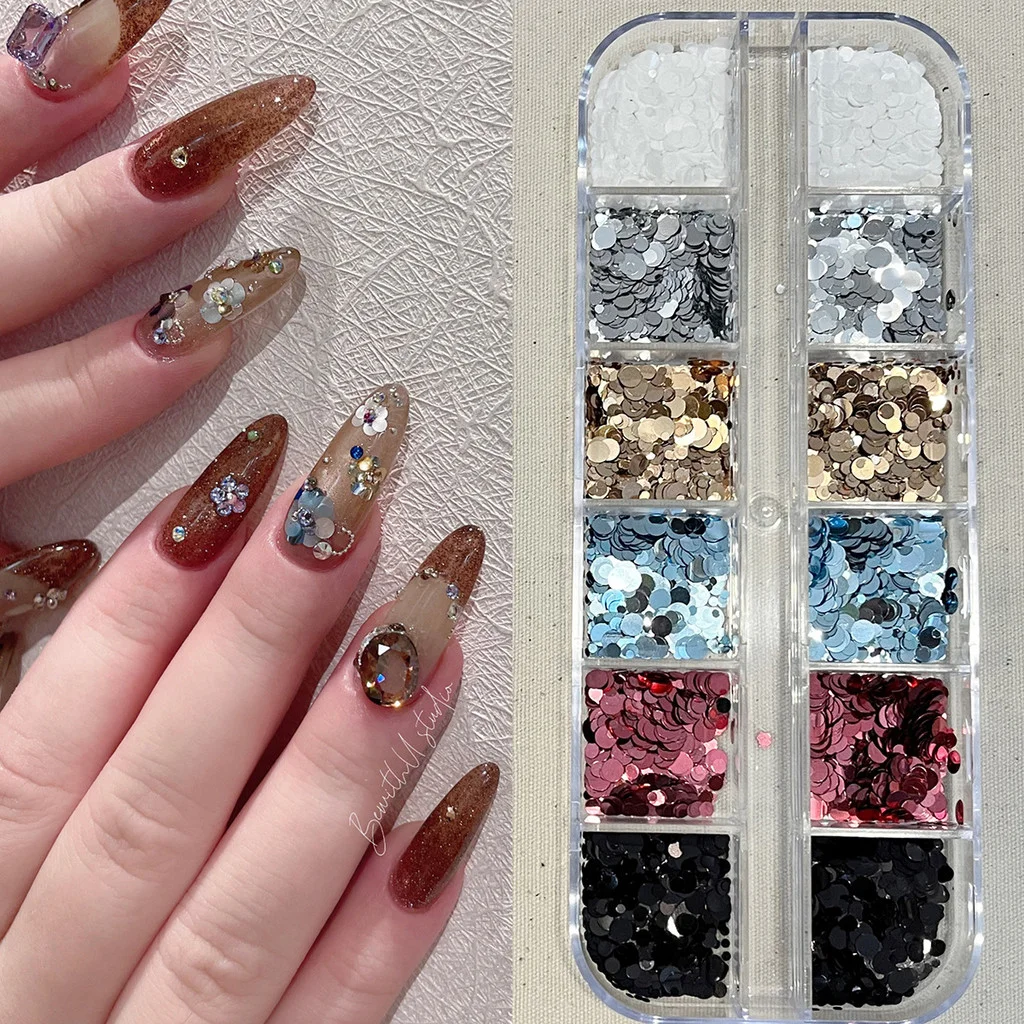 1 sztuka akcesoriów do zdobienia paznokci z brokatem w kropki, 12 przegródek, styl Instagram; akcesoria do zdobienia paznokci z brokatem w kwiaty w stylu retro.
