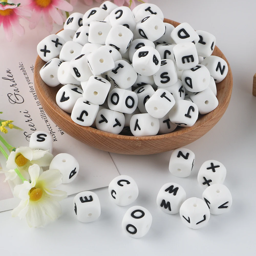 Sunrony 10 szt. 12MM Silikonowe Koraliki z Literami do Wyrobu Biżuterii, Zawieszki DIY do Naszyjników, Akcesoria Jubilerskie