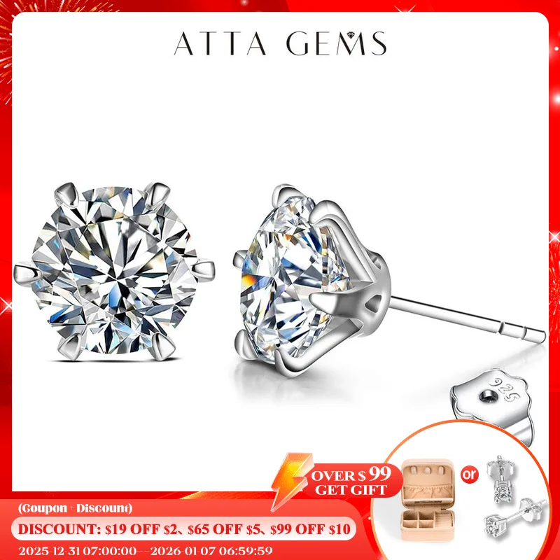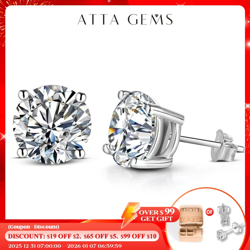 ATTAGEMS 2 Carat 8.0mm D kolor Moissanite stadniny kolczyki dla kobiet Top Quality 100% 925 Sterling srebrna iskrząca biżuteria ślubna
