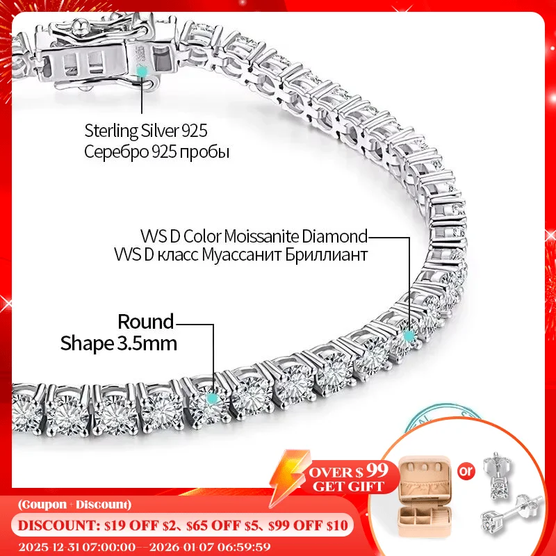 ATTAGEMS 4.0mm 5.0mm D kolor Pass Tester diamentów GRC okrągły wycięty biały pozłacany 925 srebrny moissanit bransoletka tenisowa dla kobiet