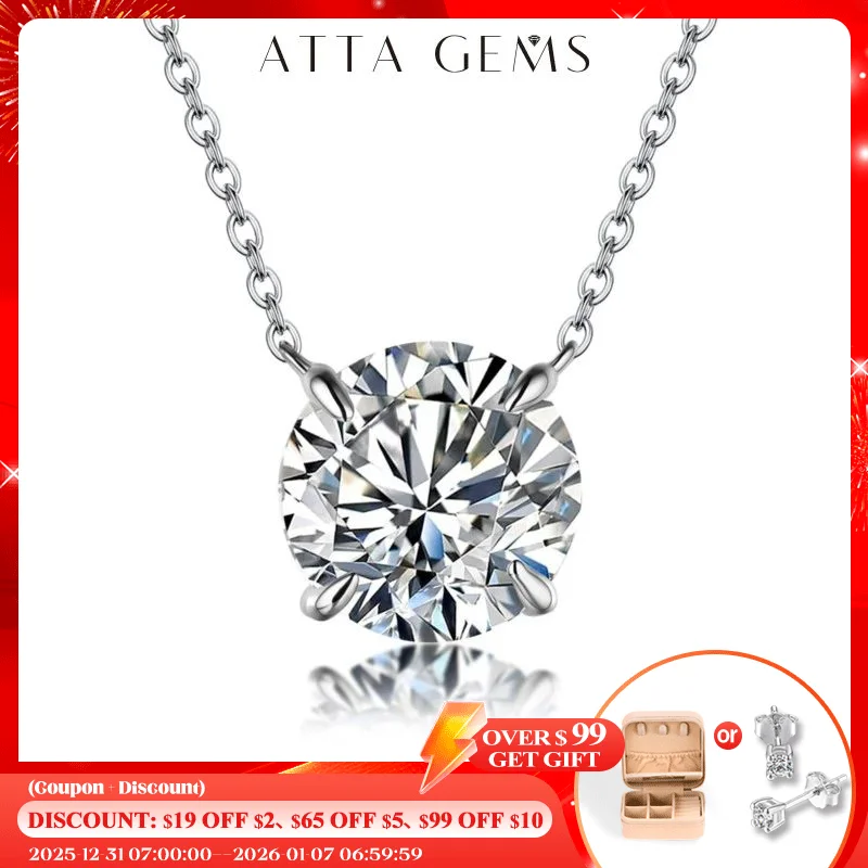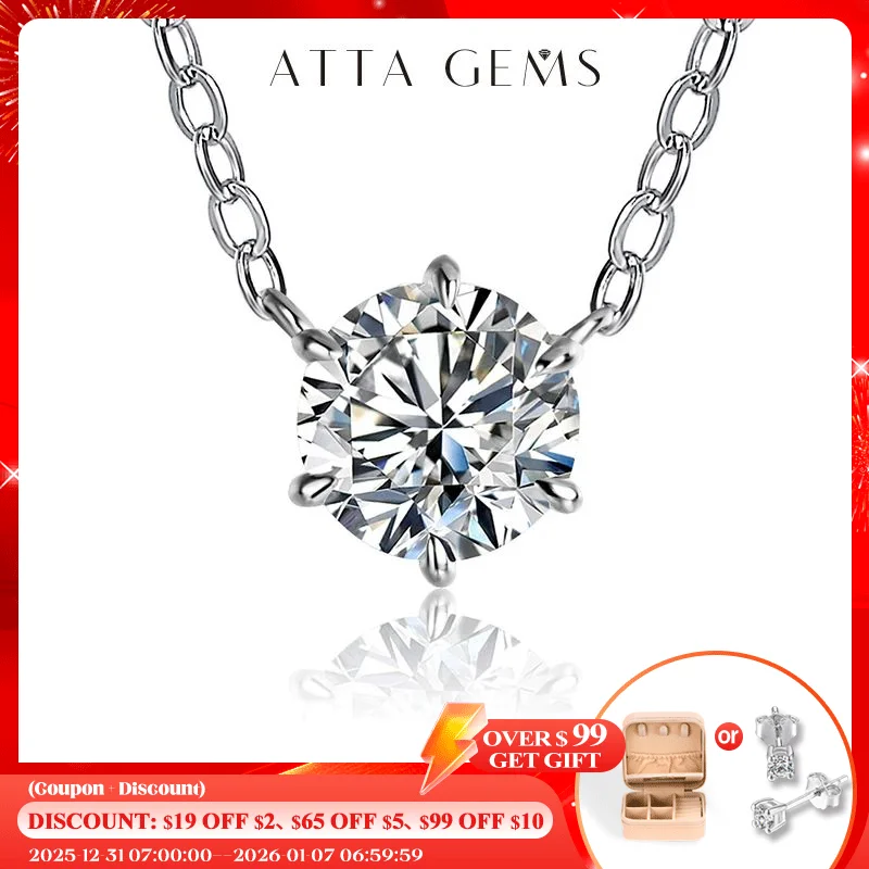 ATTAGEMS 925 srebrny naszyjnik z okrągłym wycięciem 1,0ct D kolor biały Moissanite Test diamentowy dla kobiet elegancki naszyjnik