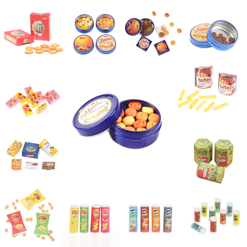 Miniaturowe pudełko ciasteczek dla lalek w skali 1/12, Mini pudełko na czekoladki, chipsy ze zdjęciami, udawaj, że bawisz się domem dla lalek, zabawki kuchenne