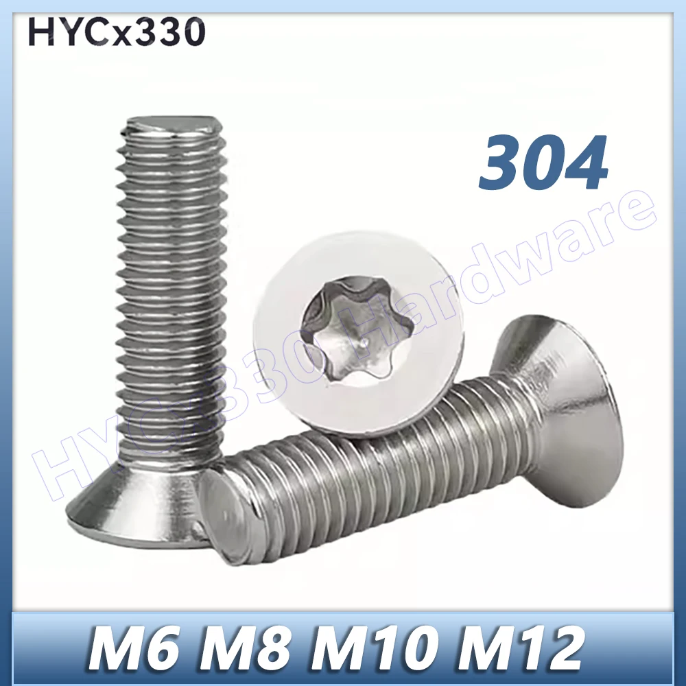 Śruba z łbem stożkowym płaskim Torx sześciokątnym ze stali nierdzewnej 304 A2, M6 M8 M10 M12, długość całkowita 10mm - 100mm