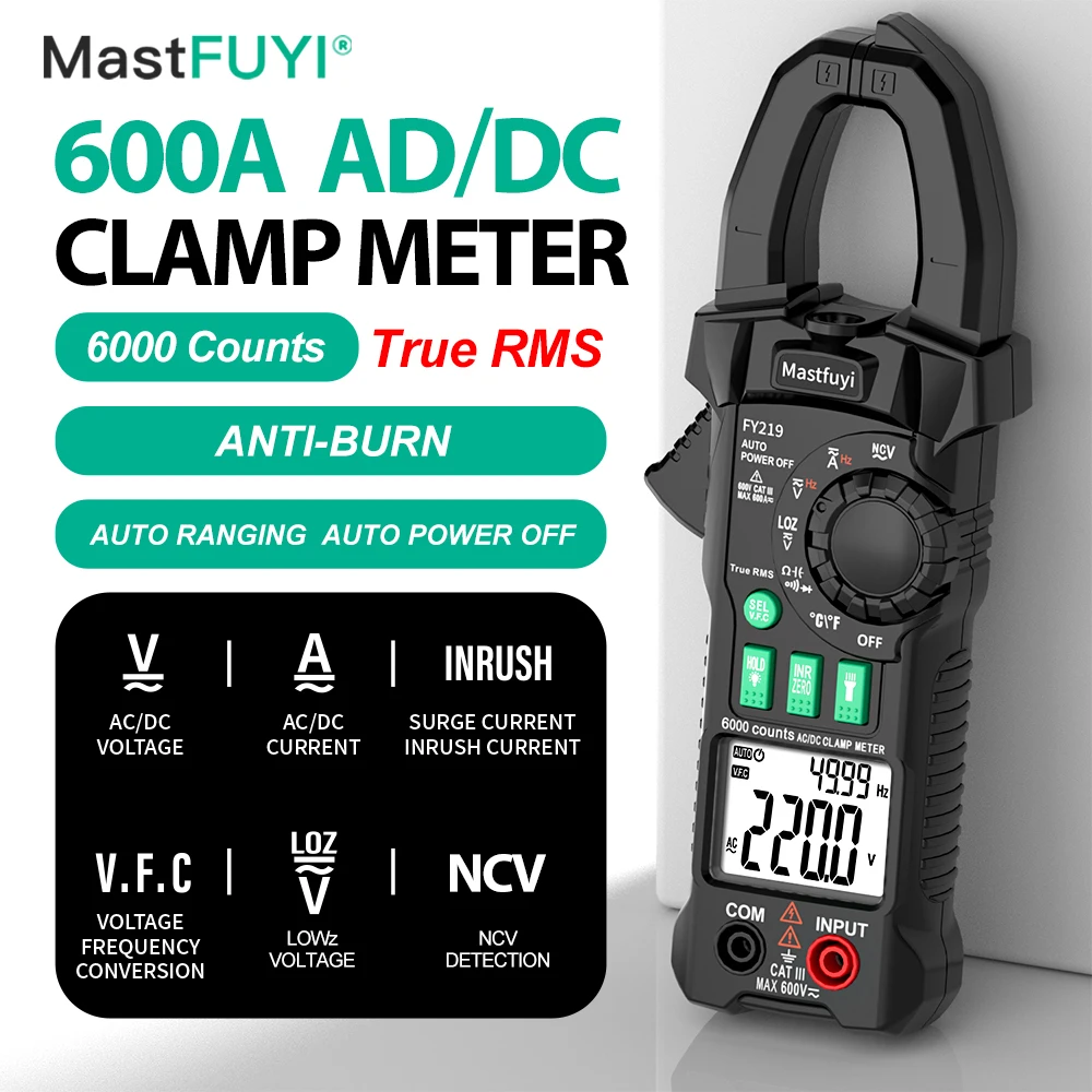 Miernik cęgowy cyfrowy MASTFUYI, multimetr z automatycznym zakresem, tester prądu, cęgła amperometryczna, prąd uruchamiający, niskonapięciowy, wykrywanie napięcia bezkontaktowego (NCV)