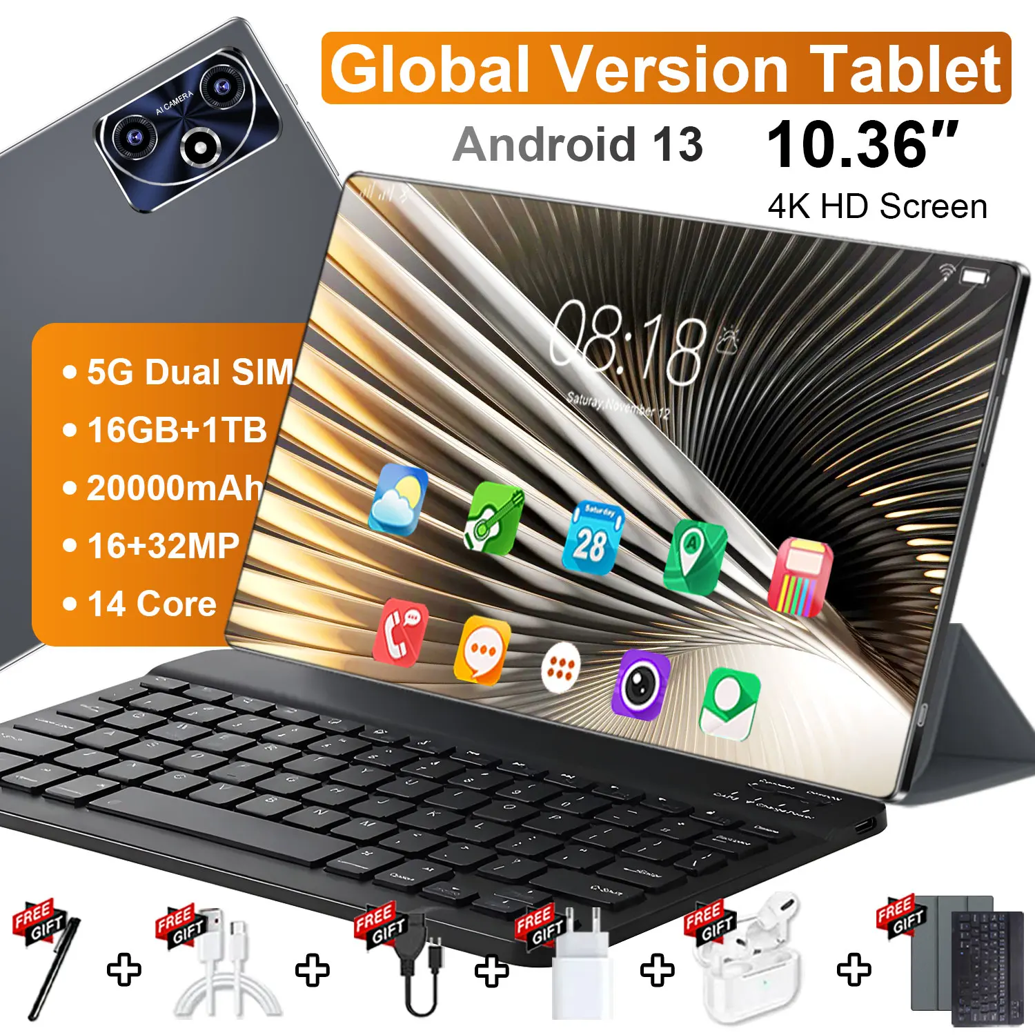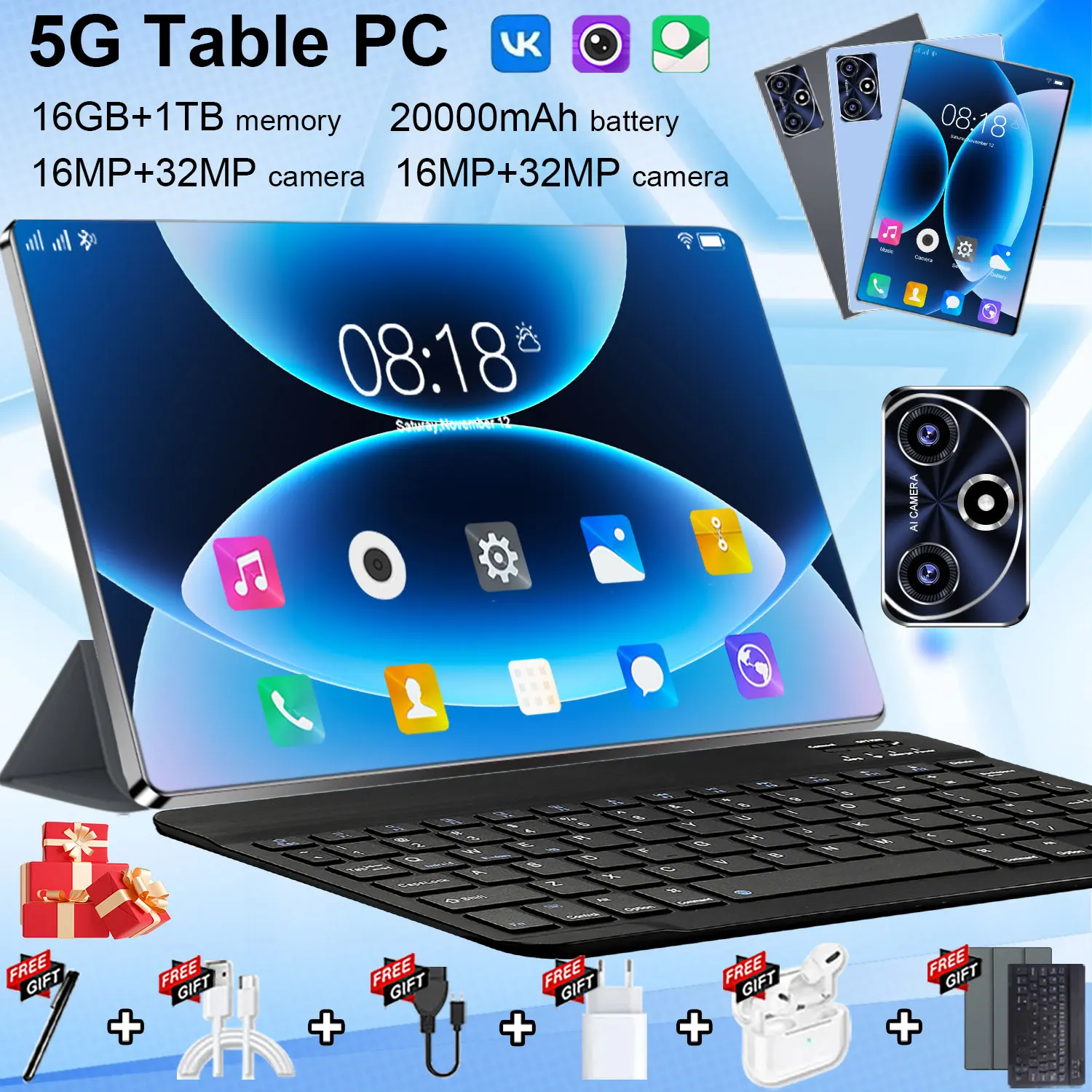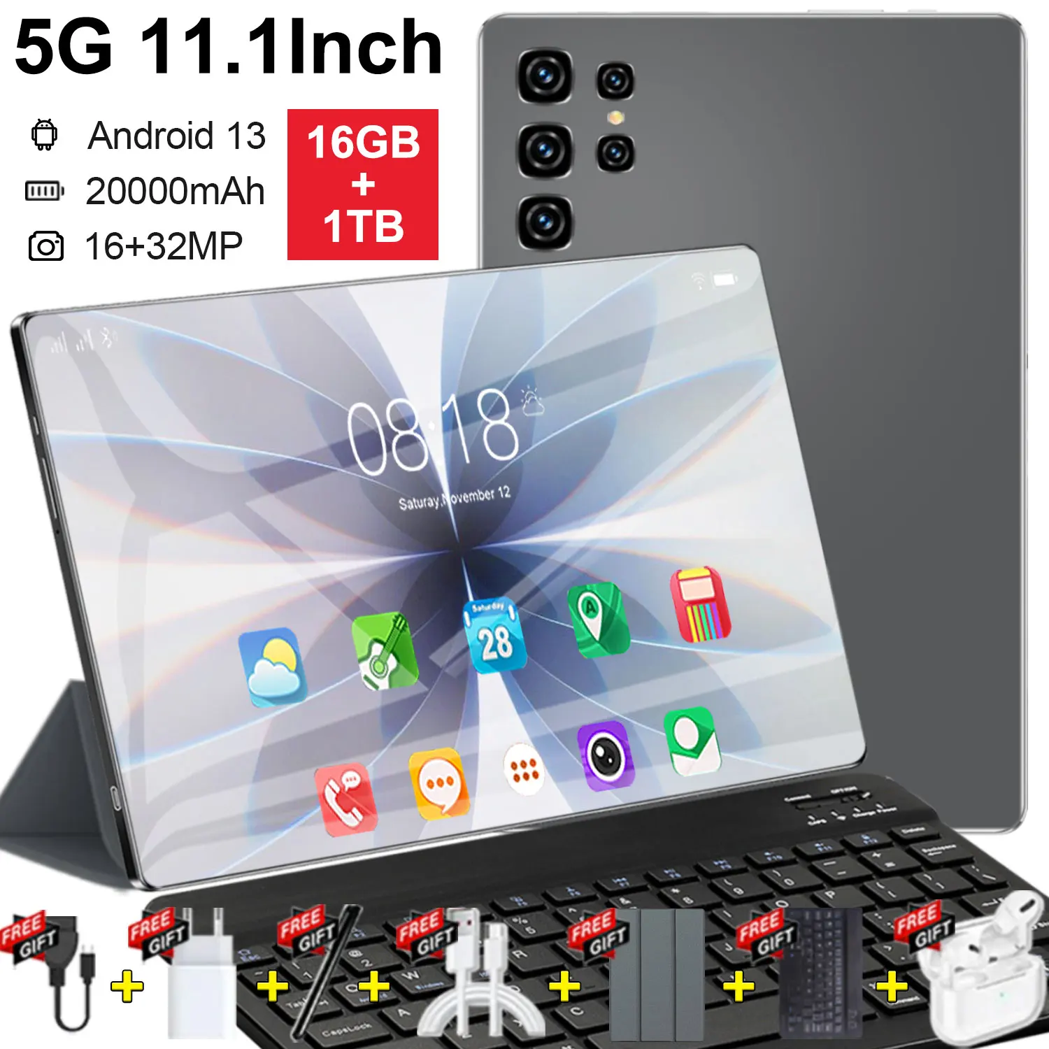 Tablet Android 11.1 cala Wersja Globalna 16GB RAM 1TB ROM Android 13.0 14-rdzeniowy 20000mAh Bluetooth WIFI Sieć Podwójny Aparat 16MP 32MP Podwójna Karta SIM Typ-C Nowe tablety PC