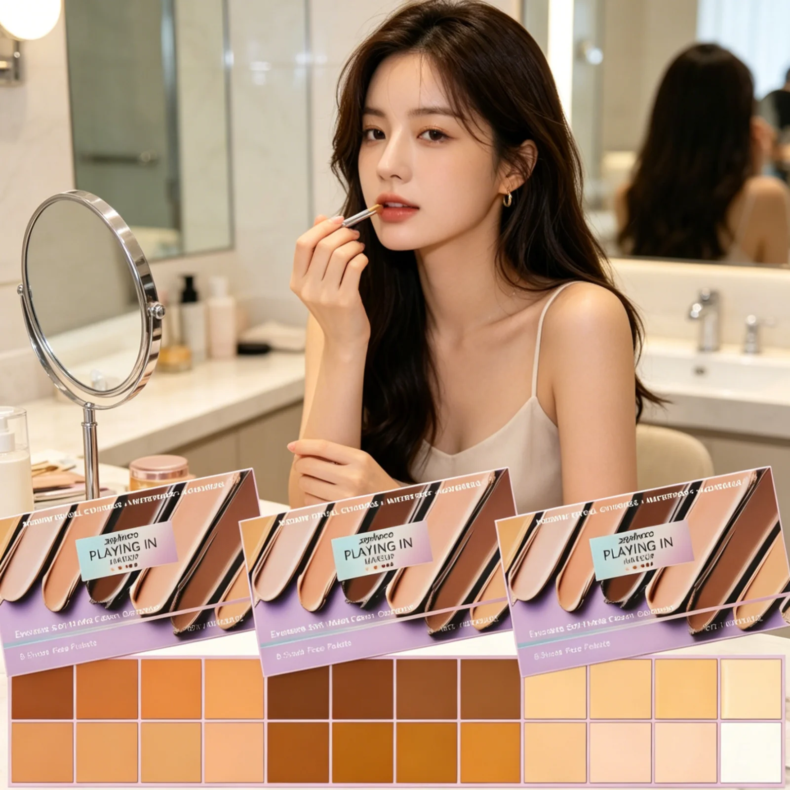 Paleta korektorów Zephoco, gładka tekstura, wysokie krycie, naturalny wygląd, wodoodporny, do makijażu na co dzień, łagodna formuła, matowy kremowy korektor.