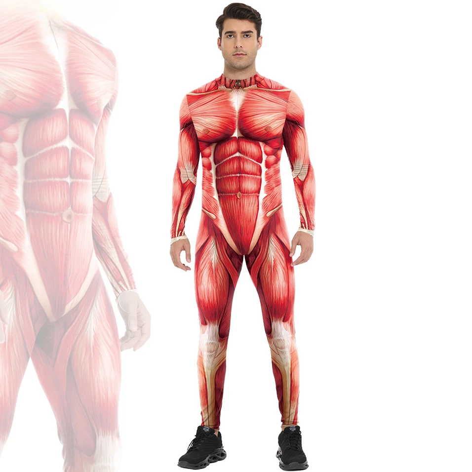 Kostium cosplay dla dorosłych z anime Atak Tytanów, ludzkie mięśnie, dla mężczyzn i kobiet, kombinezony z nadrukiem 3D, stroje na Halloween, do odgrywania ról.