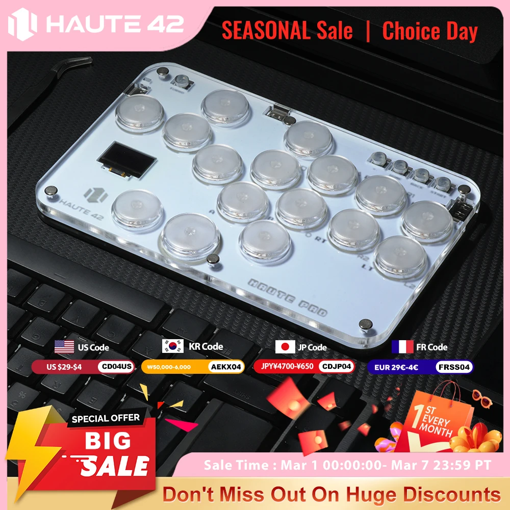 Joystick Arcade Haute42 Hitbox Bez Dźwigni, Kontroler Fight Stick do PC / PS4 / Switch, Mini Hitbox, Arcade Stick do Gier Walki